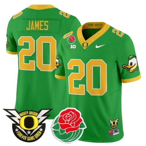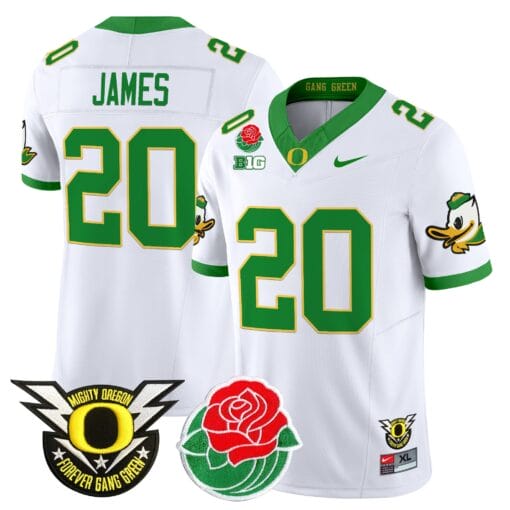 Jordan James Jersey #20 Oregon Ducks 2025 Rose Bowl Game Patch Vapor Stitched Football