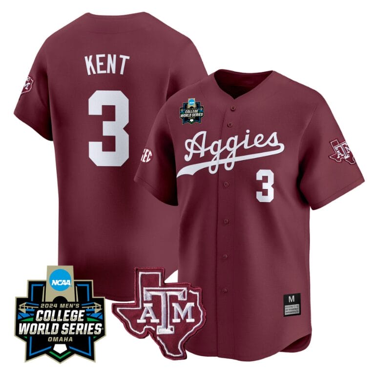 Kaeden Kent Jersey #3 Texas AM Aggies 2024 College World Series Vapor Premier Limited NCAA Baseball Stitched Maroon