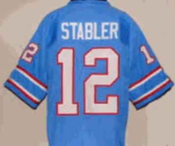 - Ken Stabler Houston Oilers Jersey: Featuring Stabler’s name and number from his time with the team.