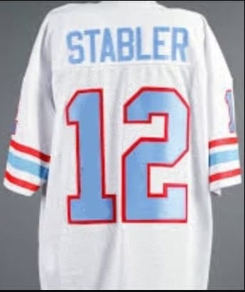 - Ken Stabler Houston Oilers Jersey: Featuring Stabler’s name and number from his time with the team.