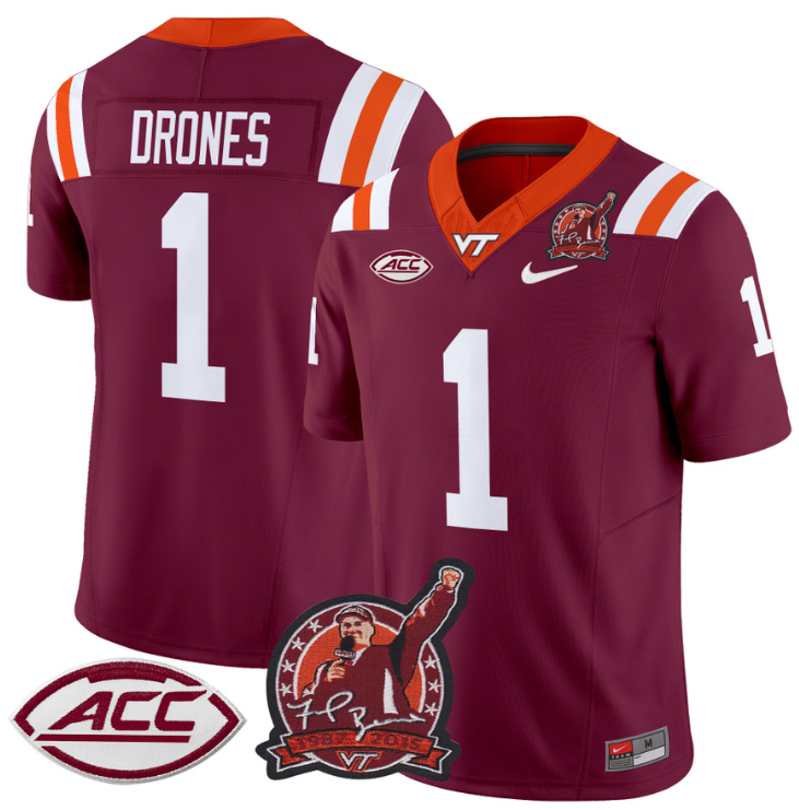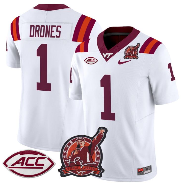 Kyron Drones Jersey #1 Virginia Tech Hokies Coach Frank Beamer Patch Stitched Football