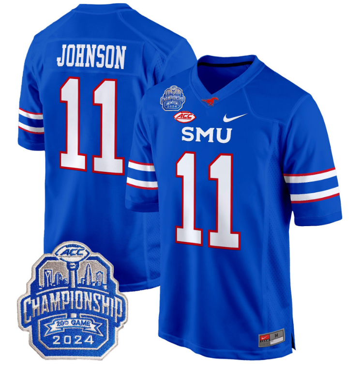 LJ Johnson Jr Jersey #11 SMU Mustangs 2024 ACC Championship Patch Stitched Football