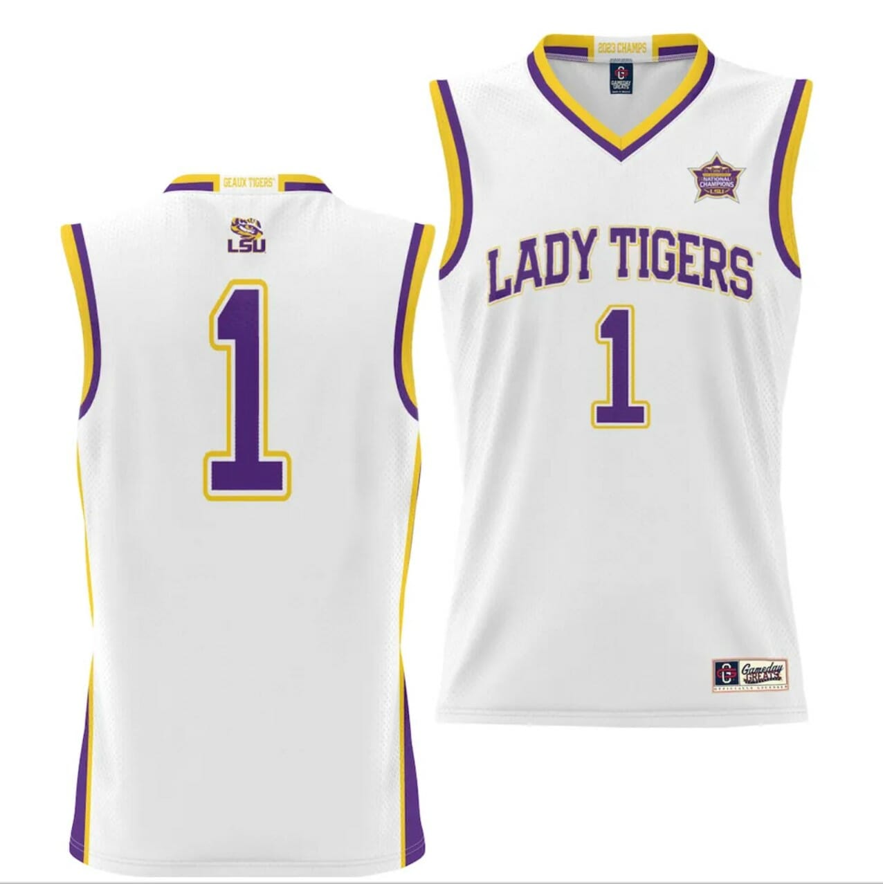 Don’t miss out on this opportunity to show your support for the LSU Tigers basketball team. Shop now and add this must-have LSU Tigers Basketball Jersey 2023 NCAA National Champions White #1 to your collection! And remember, non-alcoholic products are available for wiping or washing your jersey to keep it looking like new.