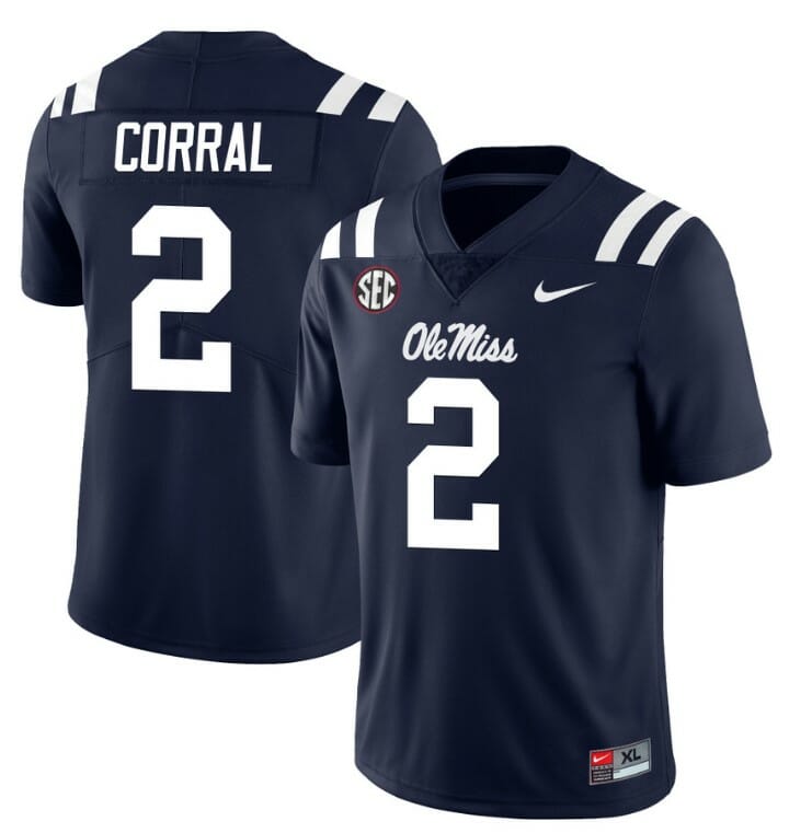 Ole Miss Rebels Matt Corral Jersey #2 College Football All Stitched Navy