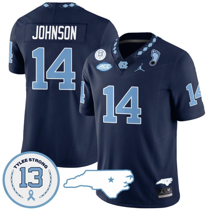 Max Johnson Jersey #14 North Carolina Tar Heels Vapor College Football Stitched Navy
