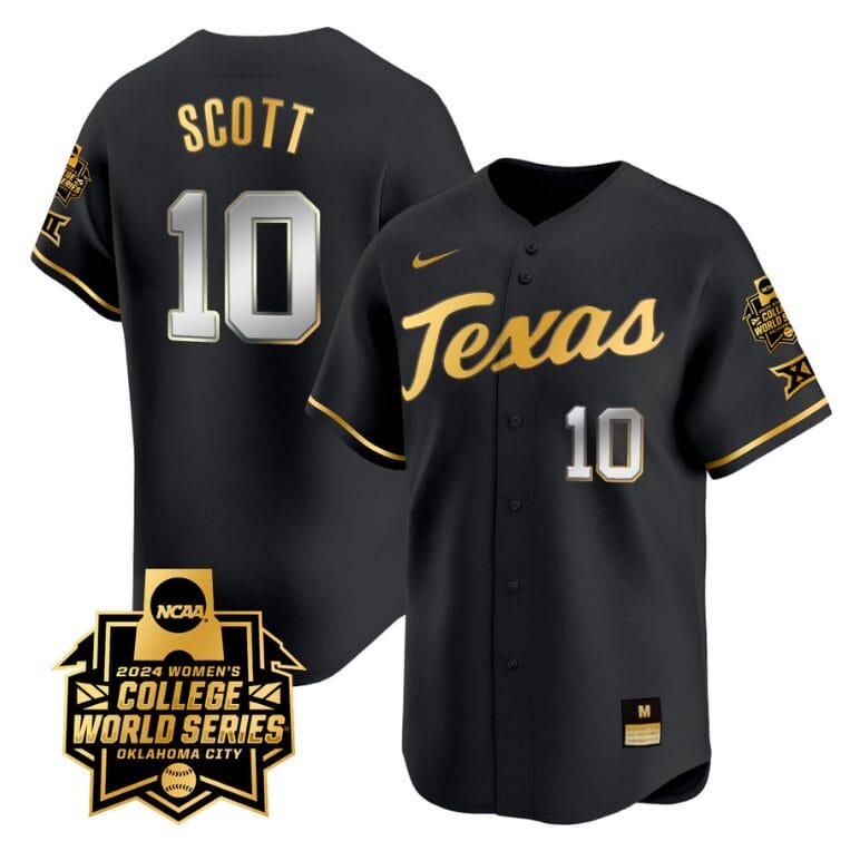 Mia Scott Jersey #10 Texas AM Aggies 2024 College World Series Patch Vapor Premier Limited NCAA Baseball Stitched Black Gold