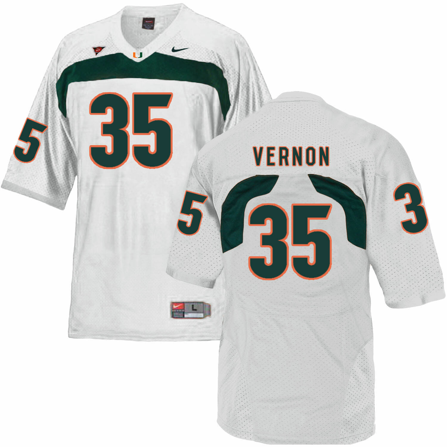 Celebrate your football fandom with this ncaa football jersey ! This Miami Hurricanes #25 Vernon NCAA College Football Jersey White is available in various size men, women and youth and features a combination of stitched-embroidery. You’ll look just like your favorite ncaa football players when you rock this ncaa football jersey!