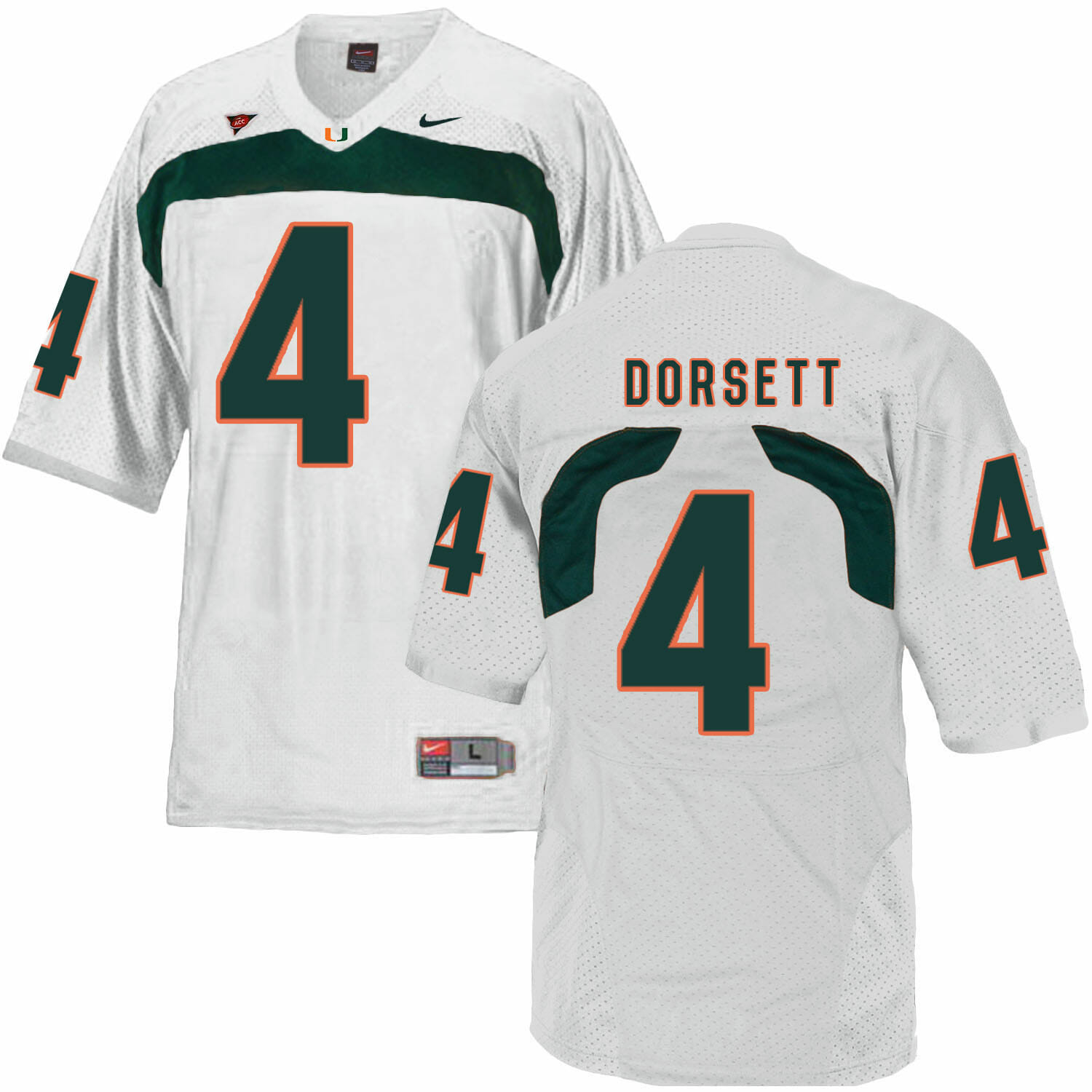 Celebrate your football fandom with this ncaa football jersey ! This Miami Hurricanes #4 Dorsett NCAA College Football Jersey White is available in various size men, women and youth and features a combination of stitched-embroidery. You’ll look just like your favorite ncaa football players when you rock this ncaa football jersey!