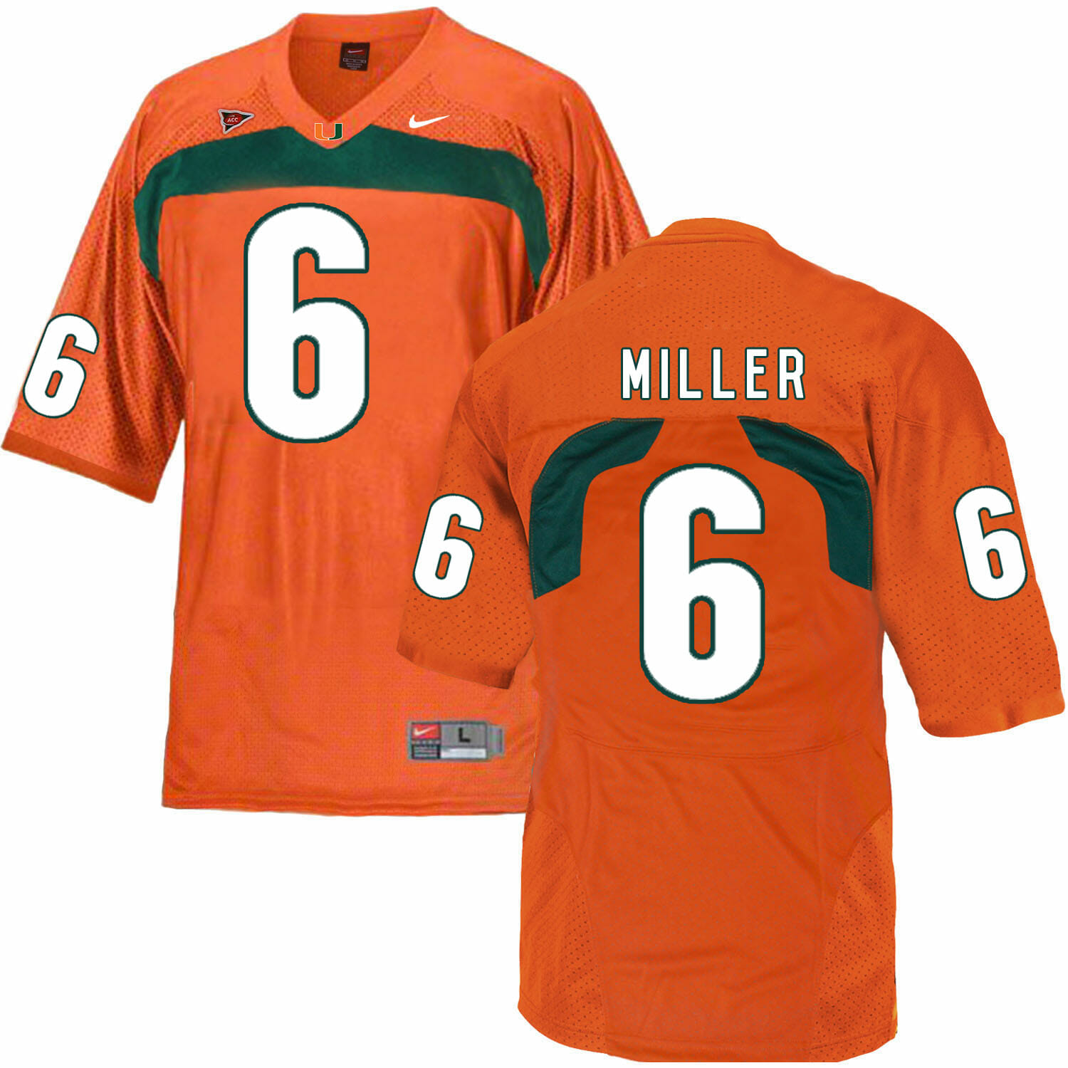 Celebrate your football fandom with this ncaa football jersey ! This Miami Hurricanes #6 Miller NCAA College Football Jersey Orange is available in various size men, women and youth and features a combination of stitched-embroidery. You’ll look just like your favorite ncaa football players when you rock this ncaa football jersey!