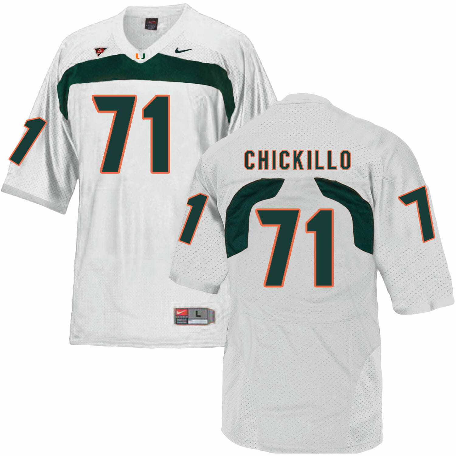 Celebrate your football fandom with this ncaa football jersey ! This Miami Hurricanes #71 Chickillo NCAA College Football Jersey White is available in various size men, women and youth and features a combination of stitched-embroidery. You’ll look just like your favorite ncaa football players when you rock this ncaa football jersey!