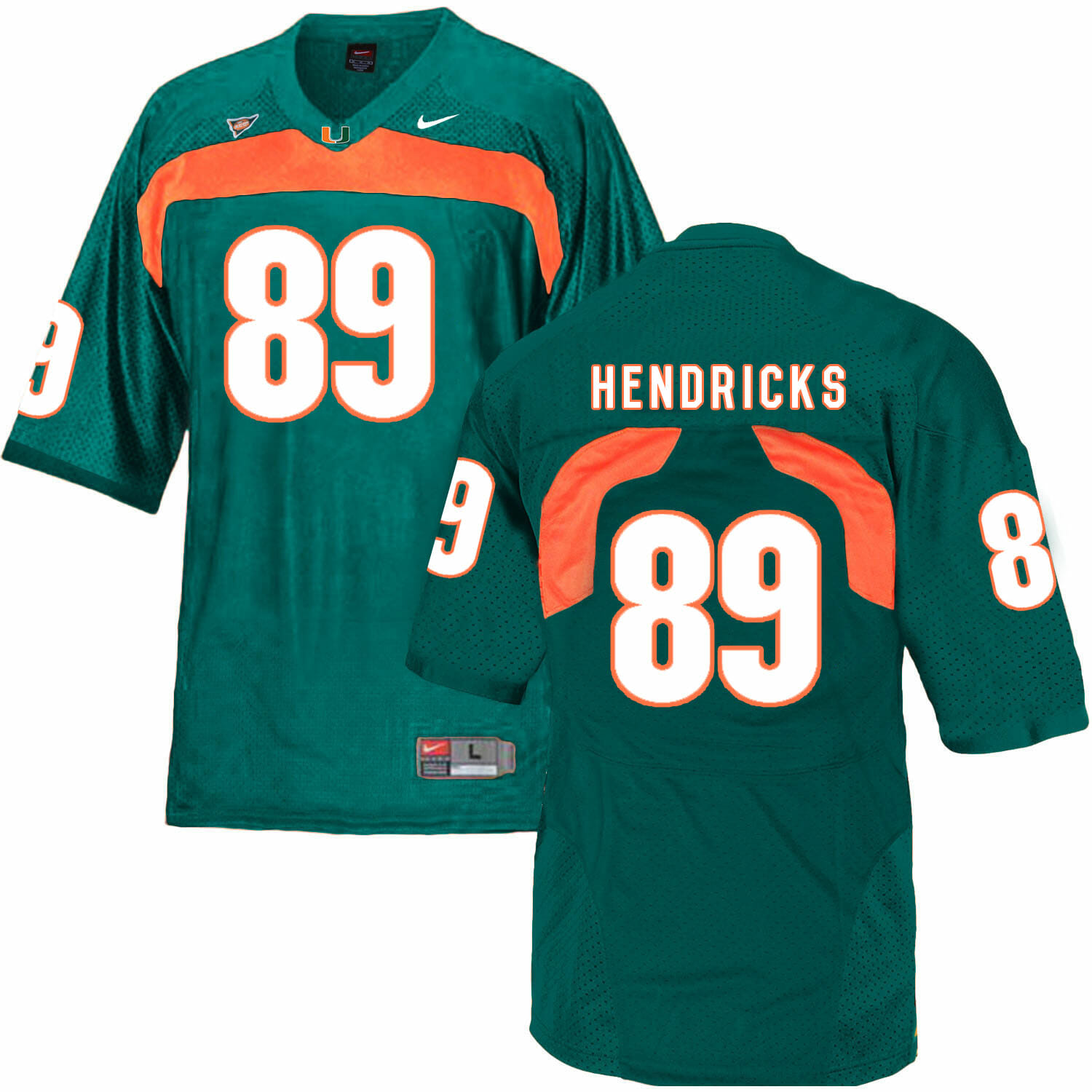 Celebrate your football fandom with this ncaa football jersey ! This Miami Hurricanes #89 Hendricks NCAA College Football Jersey Green is available in various size men, women and youth and features a combination of stitched-embroidery. You’ll look just like your favorite ncaa football players when you rock this ncaa football jersey!