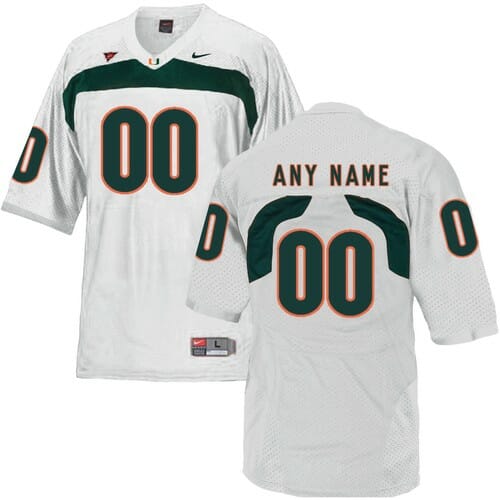 The Custom Miami Hurricanes Jersey Name Number White College Football feature stitched embroidery and are available in a variety of sizes for men, women and youth. Show off your football fandom with this NCAA college custom football jersey! This NCAA football custom miami hurricanes jersey will make you look like your favorite NCAA college football players!