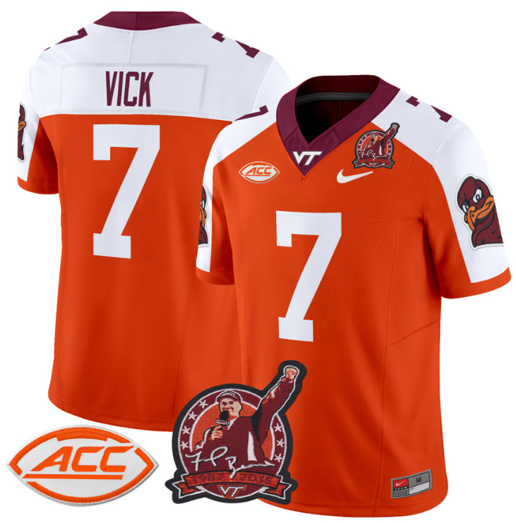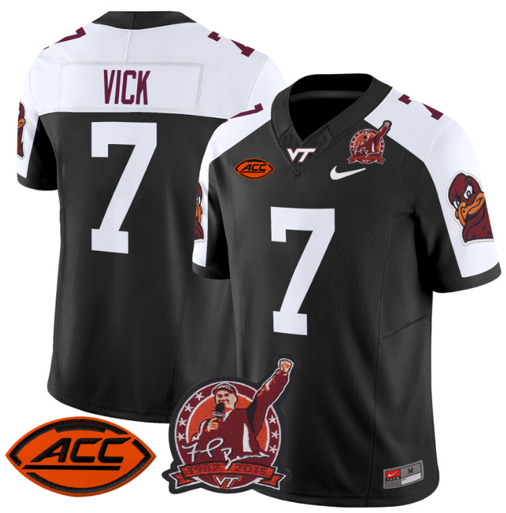 Michael Vick Jersey #7 Virginia Tech Hokies Coach Frank Beamer Stitched Football
