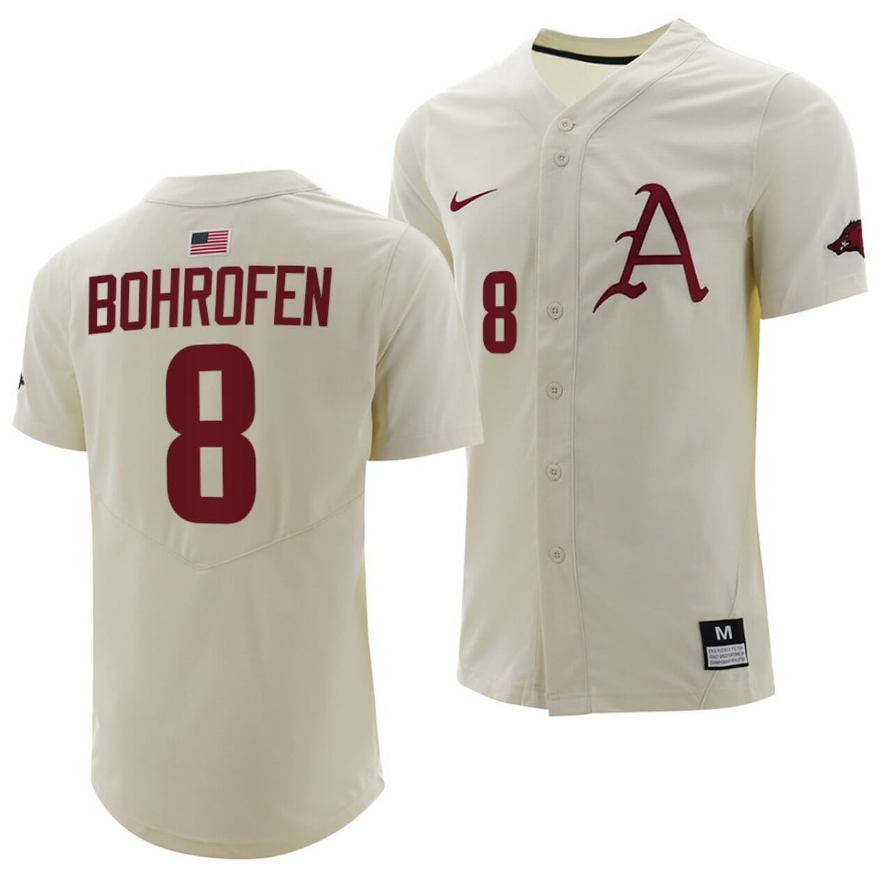 In addition to its impressive features, the Jace Bohrofen jersey is also a great addition to any collection of NCAA baseball jerseys. As a top-performing player on the Razorbacks team, Jace Bohrofen has quickly become a fan favorite. And with this high-quality jersey, you can show your support for both Bohrofen and the Razorbacks with style and ease.