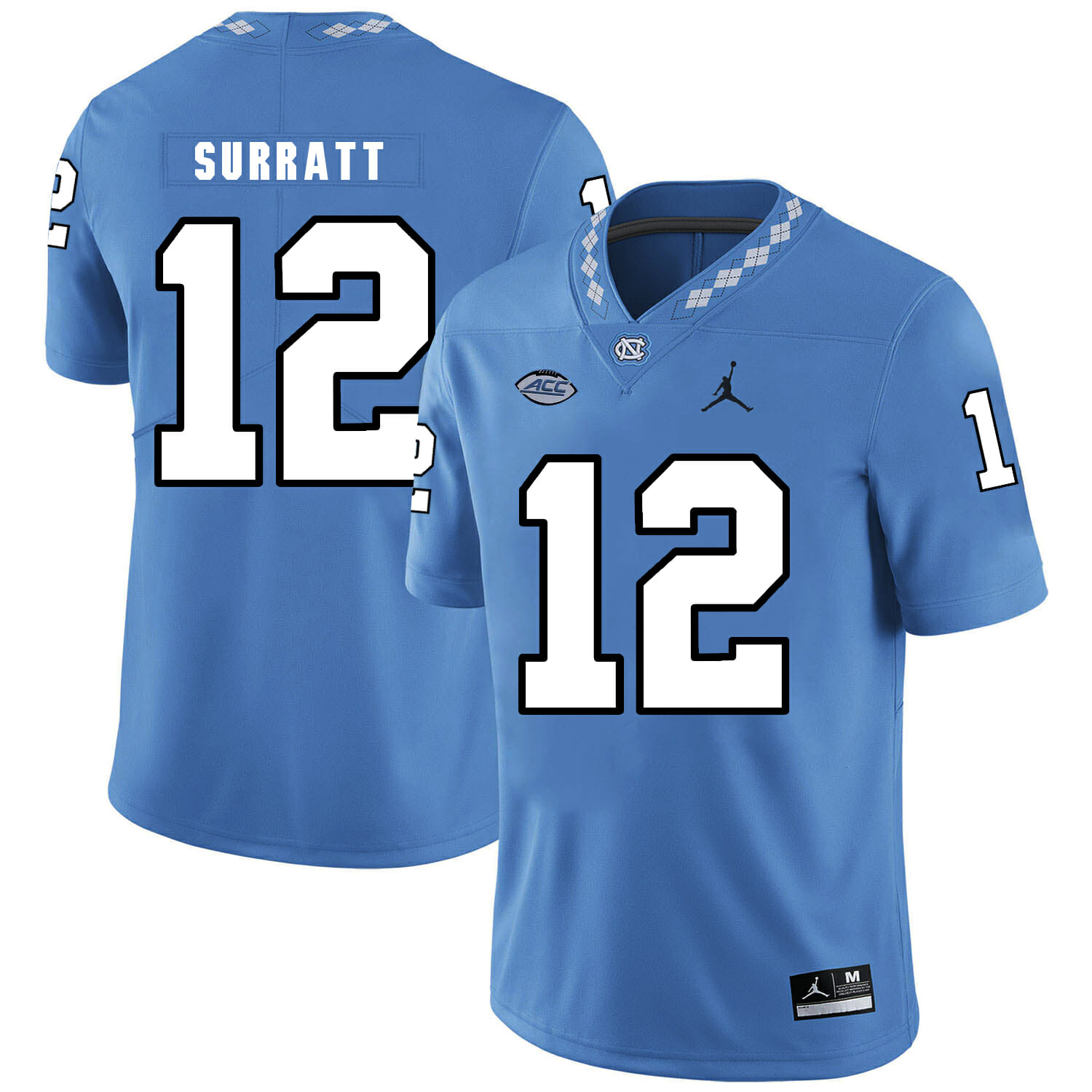 Celebrate your football fandom with this ncaa football jersey ! This North Carolina Tar Heels #12 Chazz Surratt Football Jersey Blue is available in various size men, women and youth and features a combination of stitched-embroidery. You’ll look just like your favorite ncaa football players when you rock this ncaa football jersey!