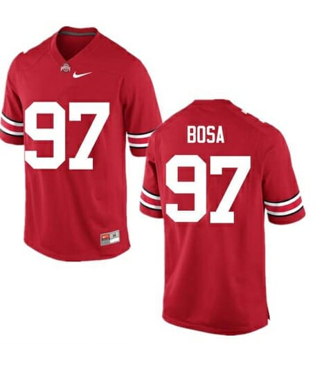 Celebrate your football fandom with this ncaa football jersey ! This Ohio State Buckeyes #97 Joey Bosa Limited NCAA College Football Jersey Red is available in various size men, women and youth and features a combination of stitched-embroidery. You’ll look just like your favorite ncaa football players when you rock this ncaa football jersey!