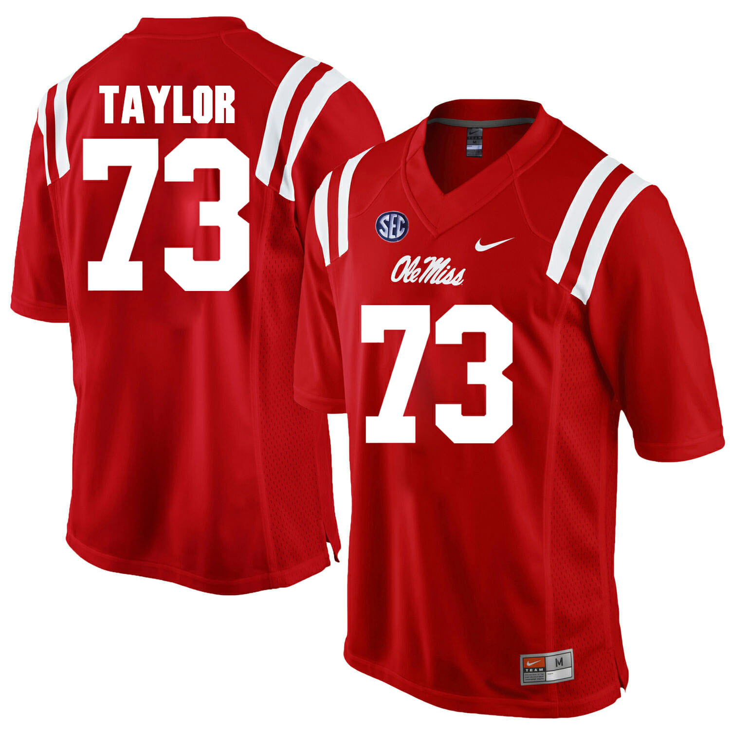 Celebrate your football fandom with this ncaa football jersey ! This Ole Miss Rebels #73 Rod Taylor NCAA College Football Jersey Red is available in various size men, women and youth and features a combination of stitched-embroidery. You’ll look just like your favorite ncaa football players when you rock this ncaa football jersey!