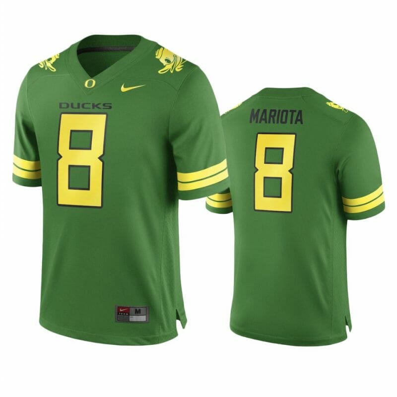 Celebrate your football fandom with this ncaa football jersey ! This Oregon Ducks #8 Marcus Mariota NCAA Football Jersey Green is available in various size men, women and youth and features a combination of stitched-embroidery. You’ll look just like your favorite ncaa football players when you rock this ncaa football jersey!