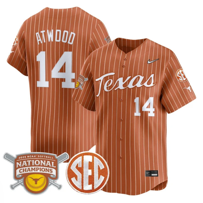 Reese Atwood Jersey #14 Texas Longhorns 2025 National Champions Stitched Baseball