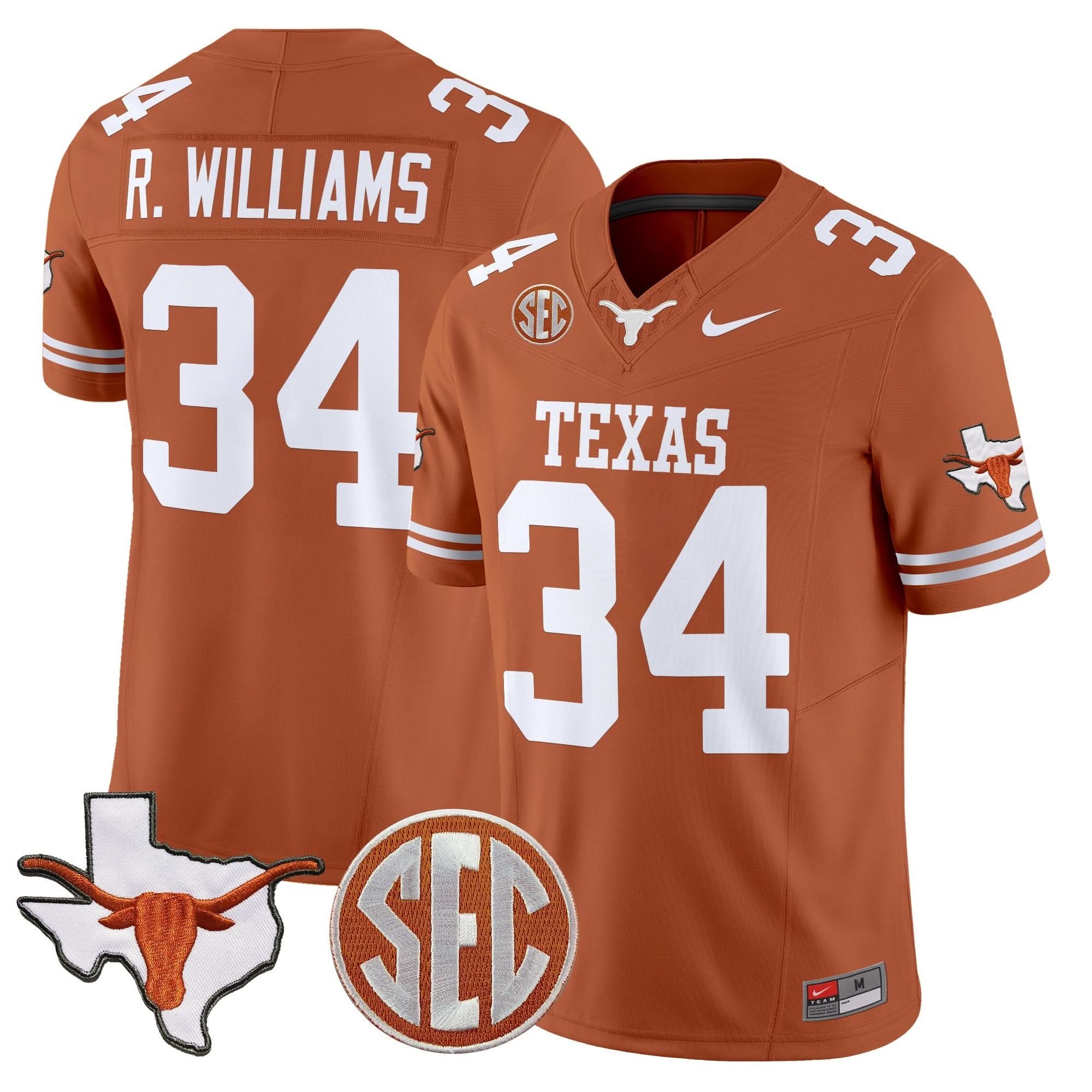 Texas Longhorns 2025 State Map & SEC Patch Vapor Limited Jersey – All Stitched
