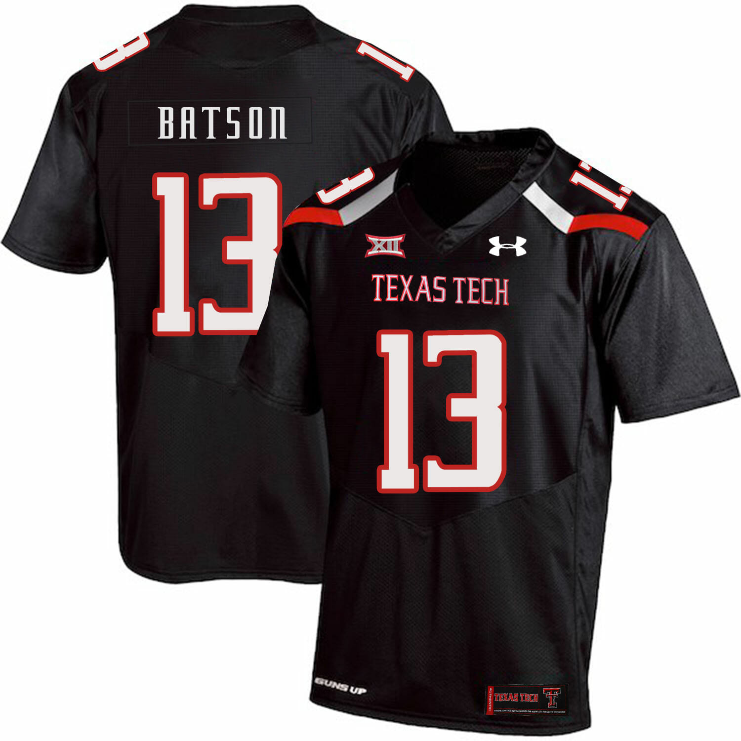 Celebrate your football fandom with this ncaa football jersey ! This Texas Tech #13 Cameron Batson NCAA College Football Jersey Black is available in various size men, women and youth and features a combination of stitched-embroidery. You’ll look just like your favorite ncaa football players when you rock this ncaa football jersey!