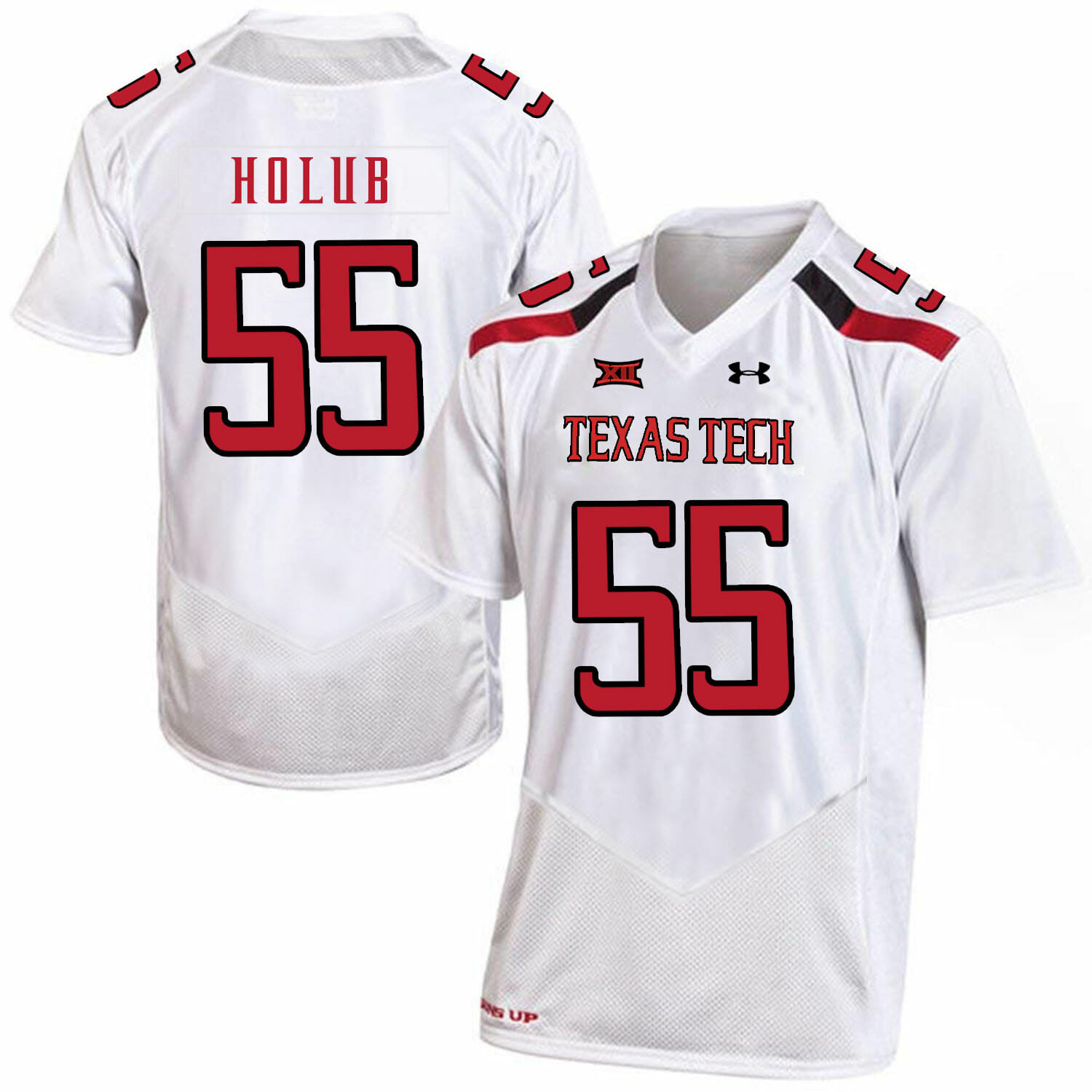 Celebrate your football fandom with this ncaa football jersey ! This Texas Tech #55 EJ Holub NCAA College Football Jersey White is available in various size men, women and youth and features a combination of stitched-embroidery. You’ll look just like your favorite ncaa football players when you rock this ncaa football jersey!