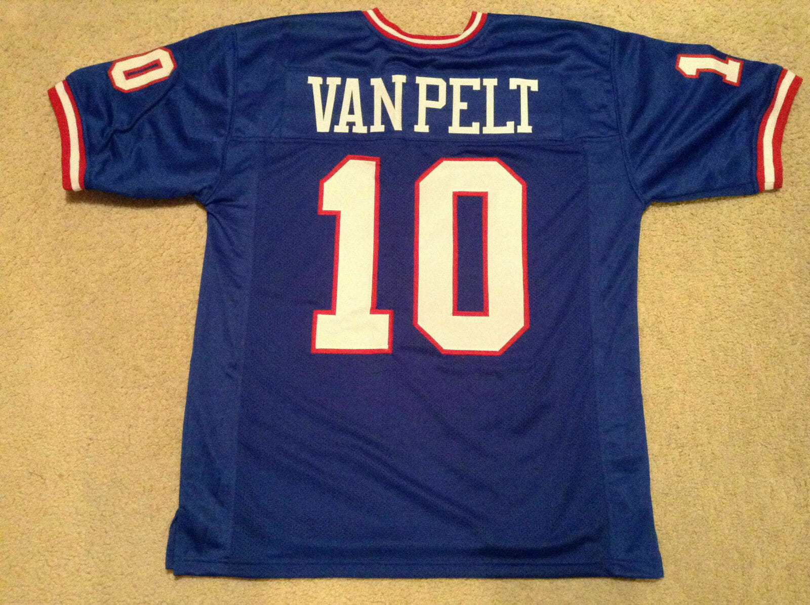 Celebrate your football fandom with this football jersey ! This UNSIGNED CUSTOM Sewn Stitched Brad Van Pelt Blue Jersey is available in various size men and features a combination of stitched-embroidery. You’ll look just like your favorite football players when you rock this football jersey!