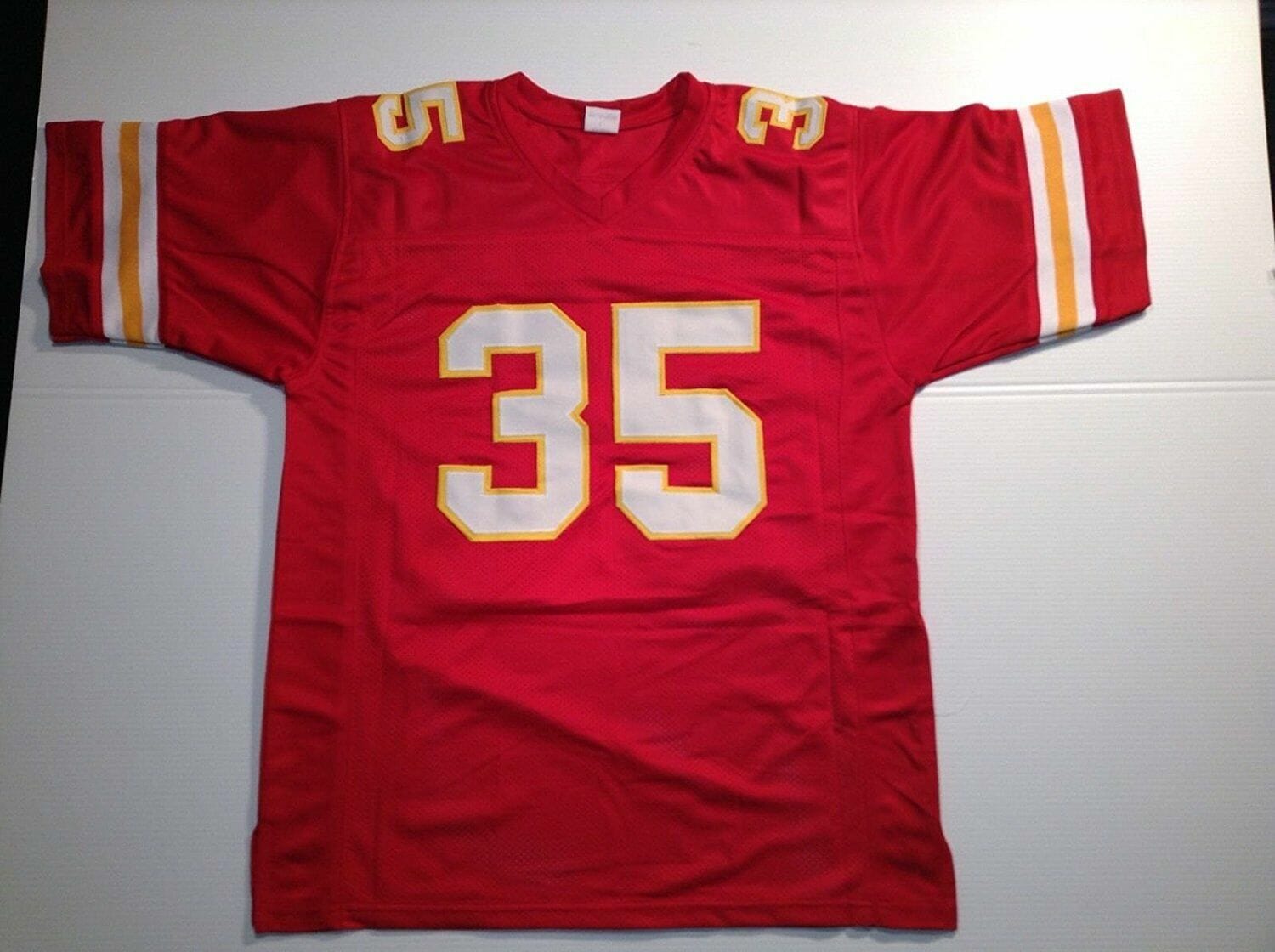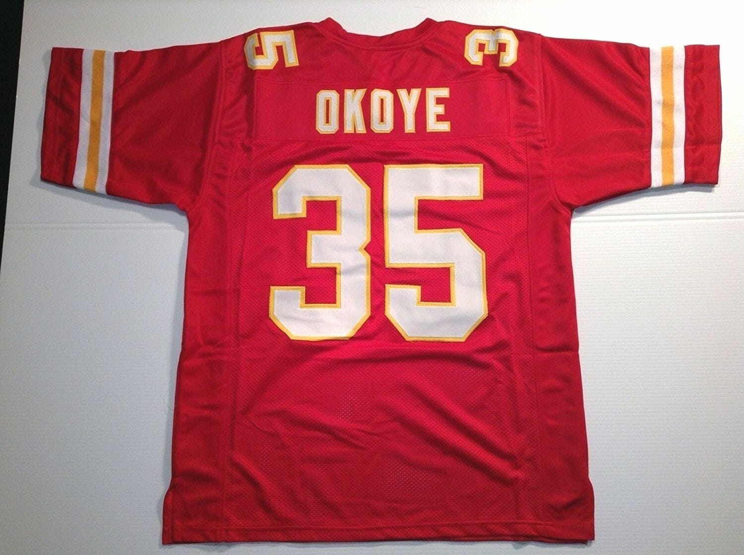 Celebrate your football fandom with this football jersey ! This UNSIGNED CUSTOM Sewn Stitched Christian Okoye Red Jersey is available in various size men and features a combination of stitched-embroidery. You’ll look just like your favorite football players when you rock this football jersey!