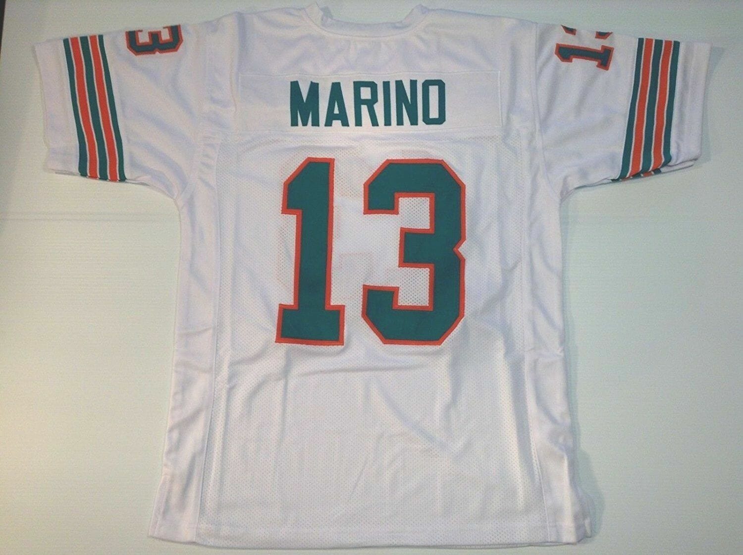 Celebrate your football fandom with this football jersey ! This UNSIGNED CUSTOM Sewn Stitched Dan Marino White Jersey is available in various size men and features a combination of stitched-embroidery. You’ll look just like your favorite football players when you rock this football jersey!