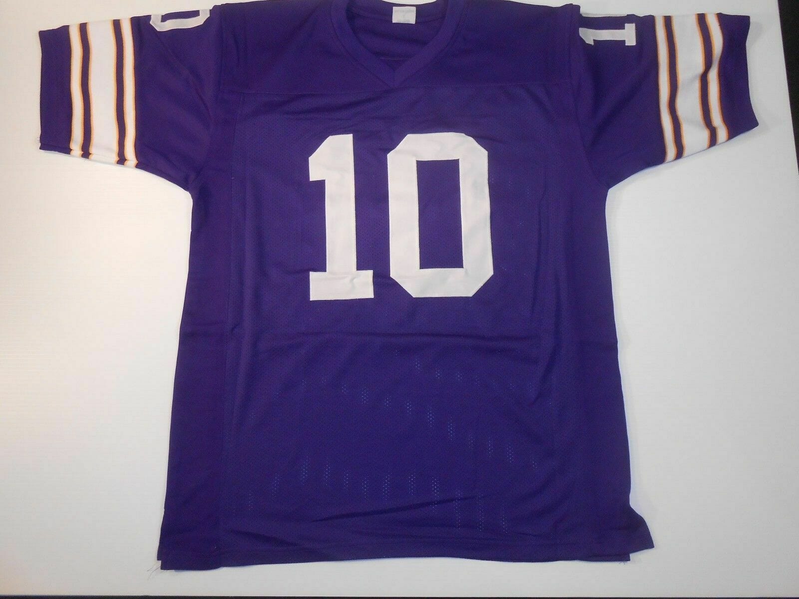 Celebrate your football fandom with this football jersey ! This UNSIGNED CUSTOM Sewn Stitched Fran Tarkenton Purple Jersey is available in various size men and features a combination of stitched-embroidery. You’ll look just like your favorite football players when you rock this football jersey!