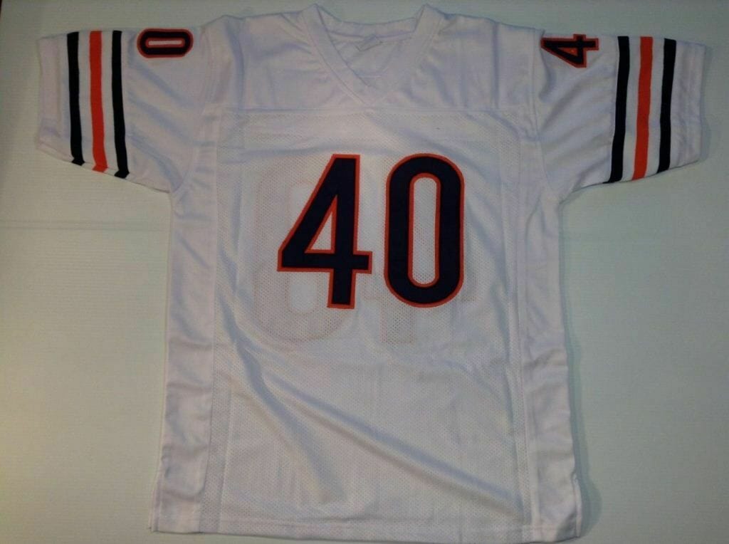 Celebrate your football fandom with this football jersey ! This UNSIGNED CUSTOM Sewn Stitched Gale Sayers White Jersey is available in various size men and features a combination of stitched-embroidery. You’ll look just like your favorite football players when you rock this football jersey!