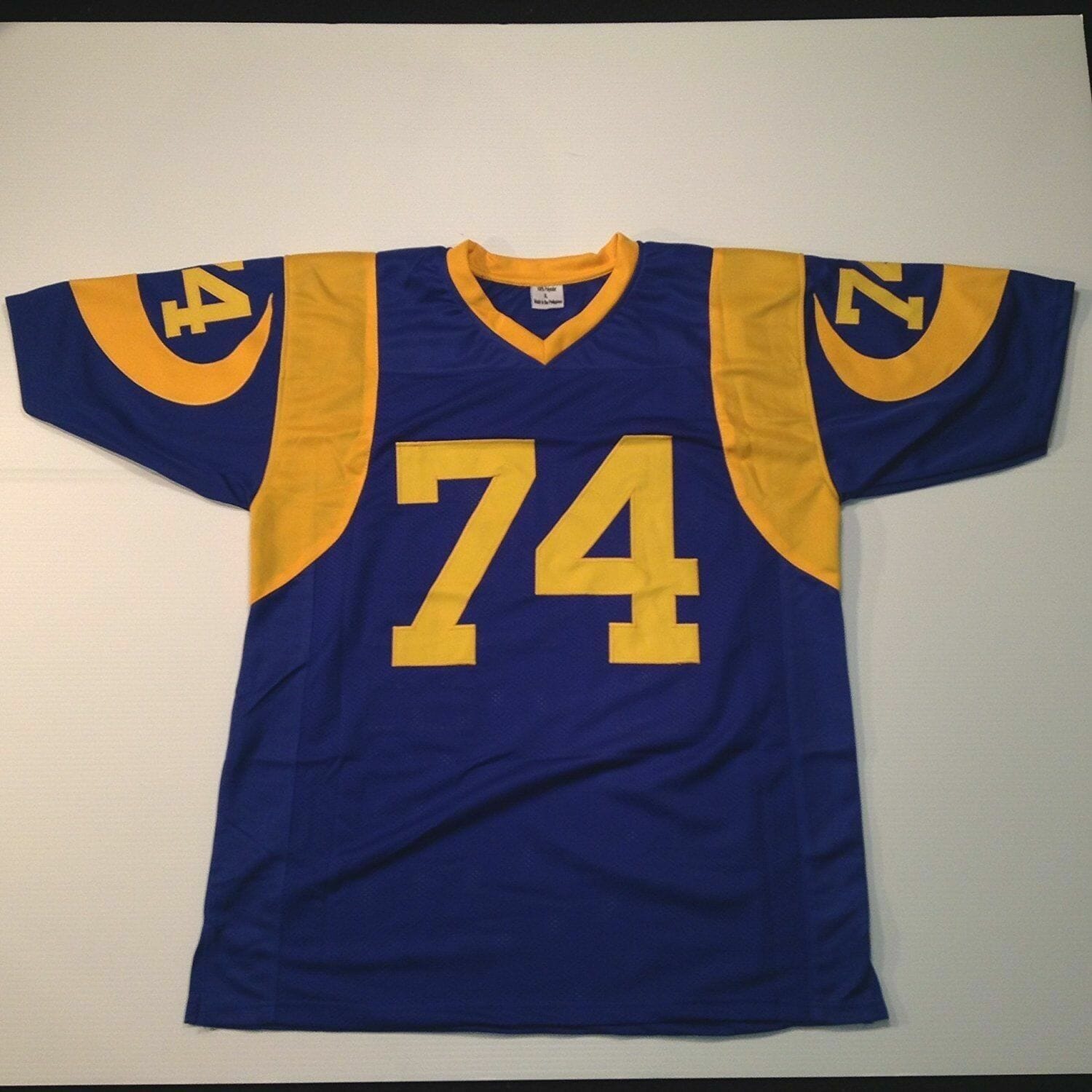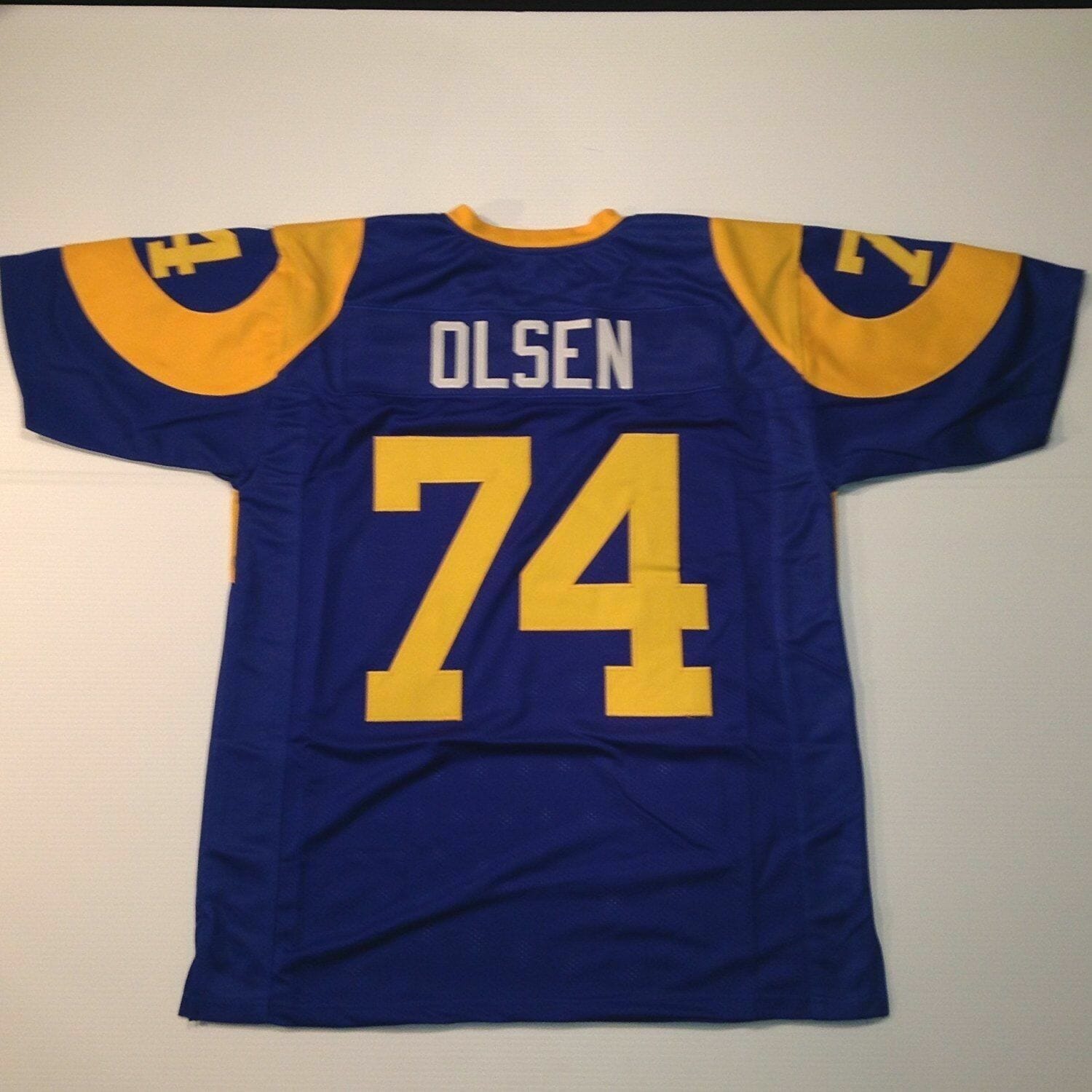 Celebrate your football fandom with this football jersey ! This UNSIGNED CUSTOM Sewn Stitched Merlin Olsen Blue Jersey is available in various size men and features a combination of stitched-embroidery. You’ll look just like your favorite football players when you rock this football jersey!