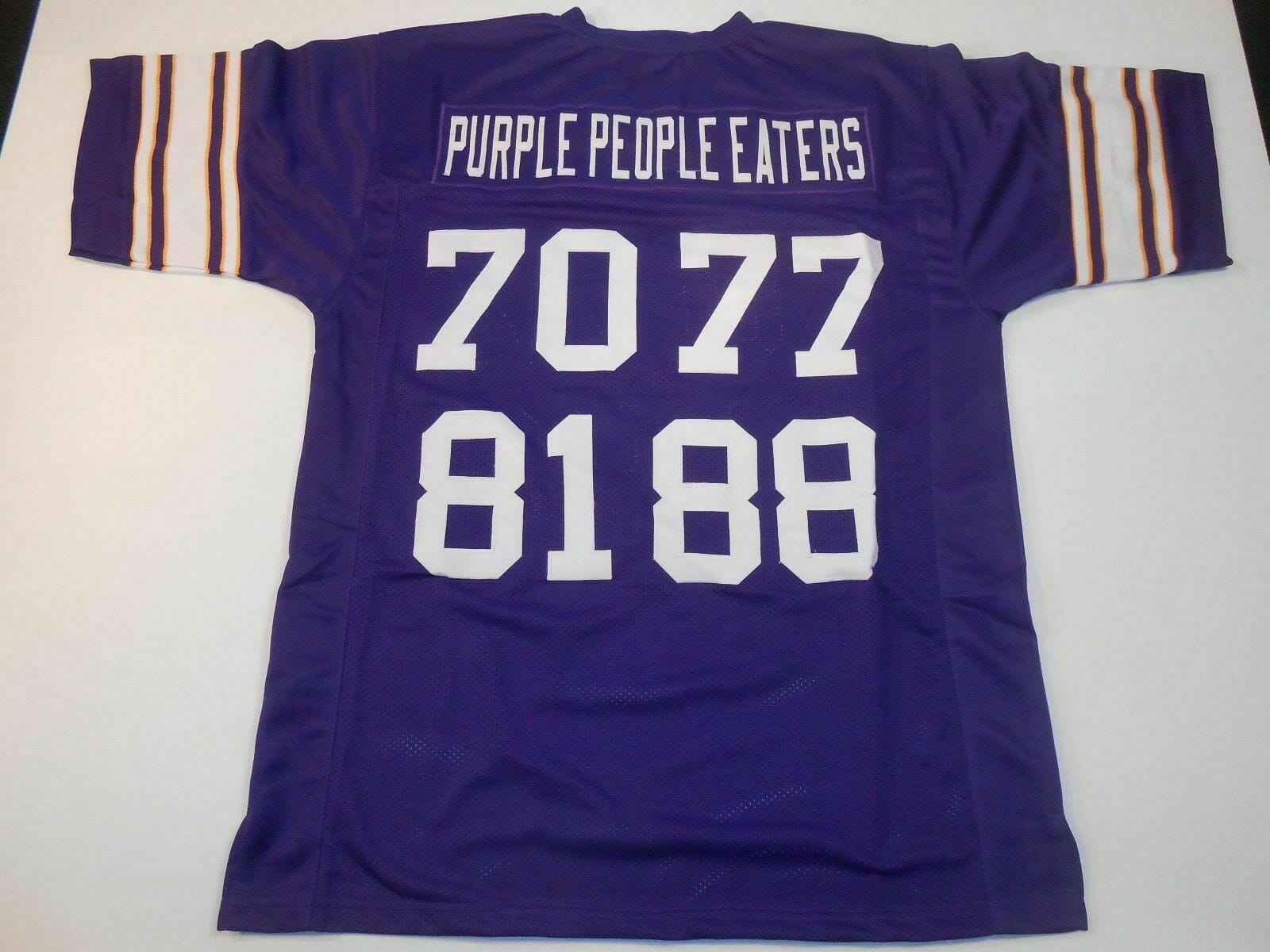 Celebrate your football fandom with this football jersey ! This UNSIGNED CUSTOM Sewn Stitched Purple People Eaters Purple Jersey is available in various size men and features a combination of stitched-embroidery. You’ll look just like your favorite football players when you rock this football jersey!