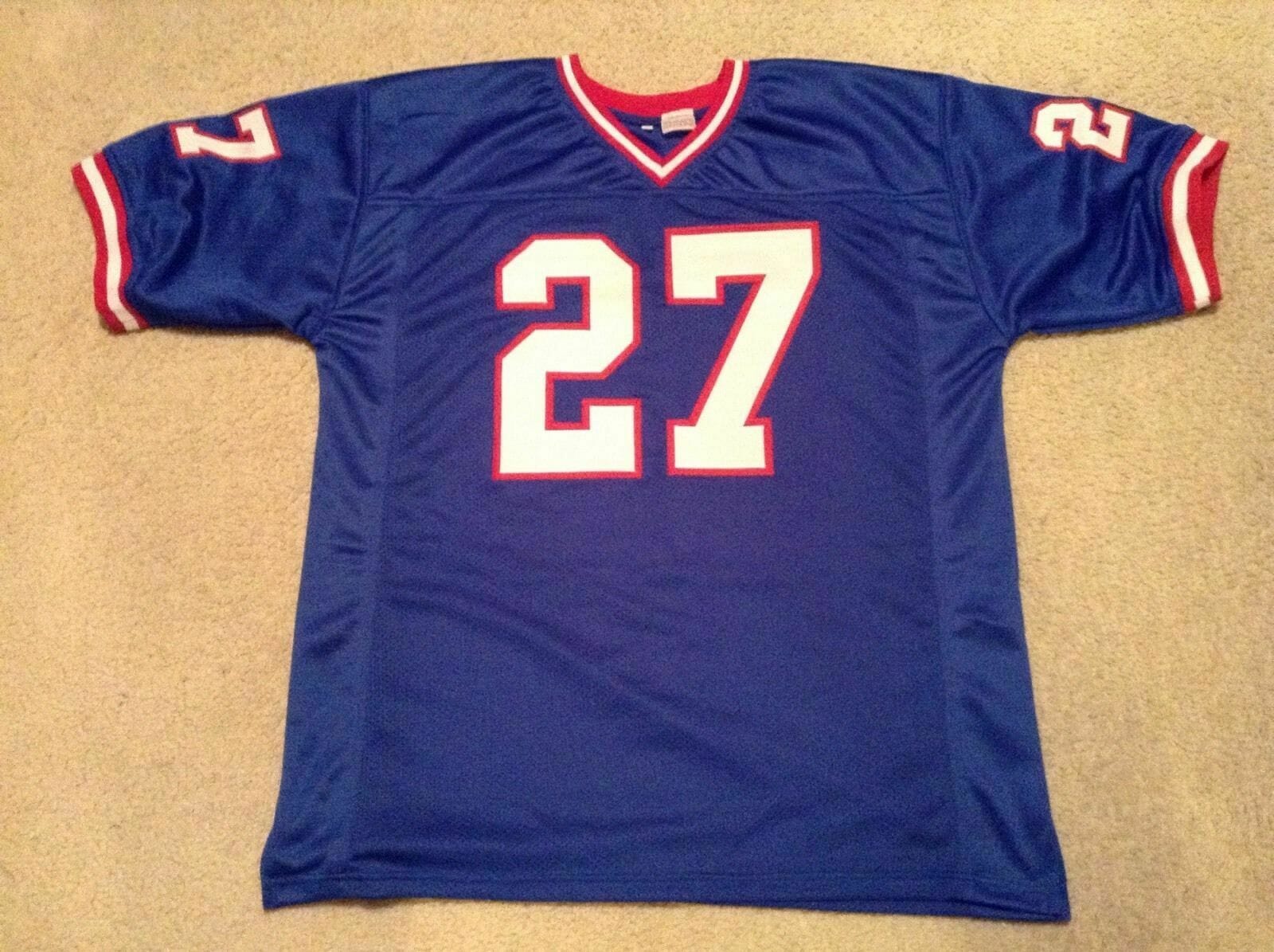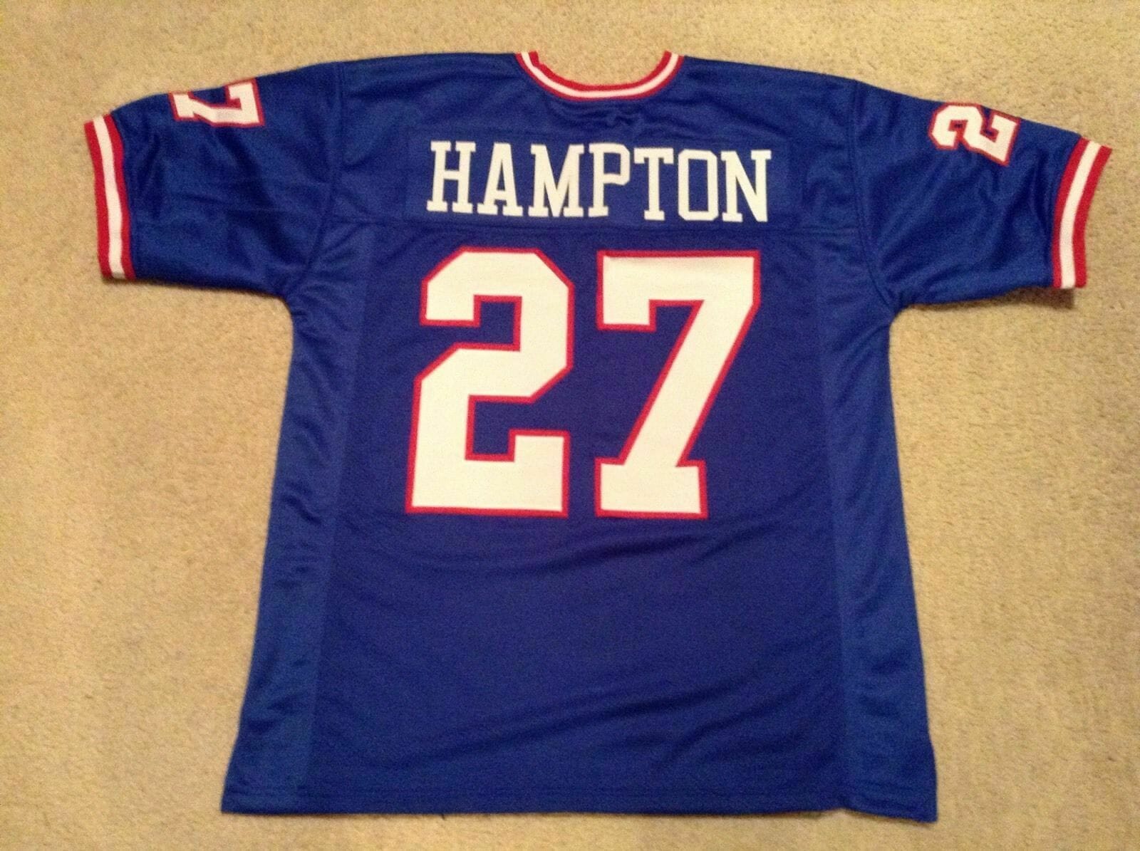 Celebrate your football fandom with this football jersey ! This UNSIGNED CUSTOM Sewn Stitched Rodney Hampton Blue Jersey is available in various size men and features a combination of stitched-embroidery. You’ll look just like your favorite football players when you rock this football jersey!