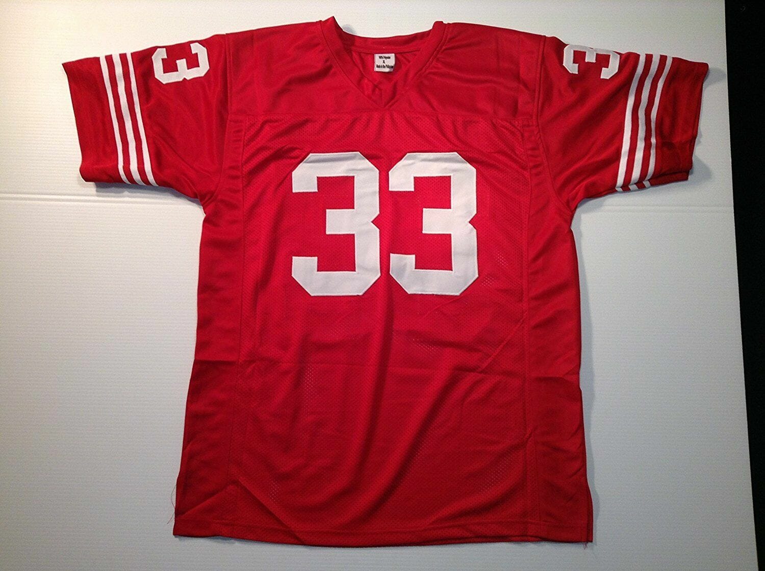 Celebrate your football fandom with this football jersey ! This UNSIGNED CUSTOM Sewn Stitched Roger Craig Red Jersey is available in various size men and features a combination of stitched-embroidery. You’ll look just like your favorite football players when you rock this football jersey!