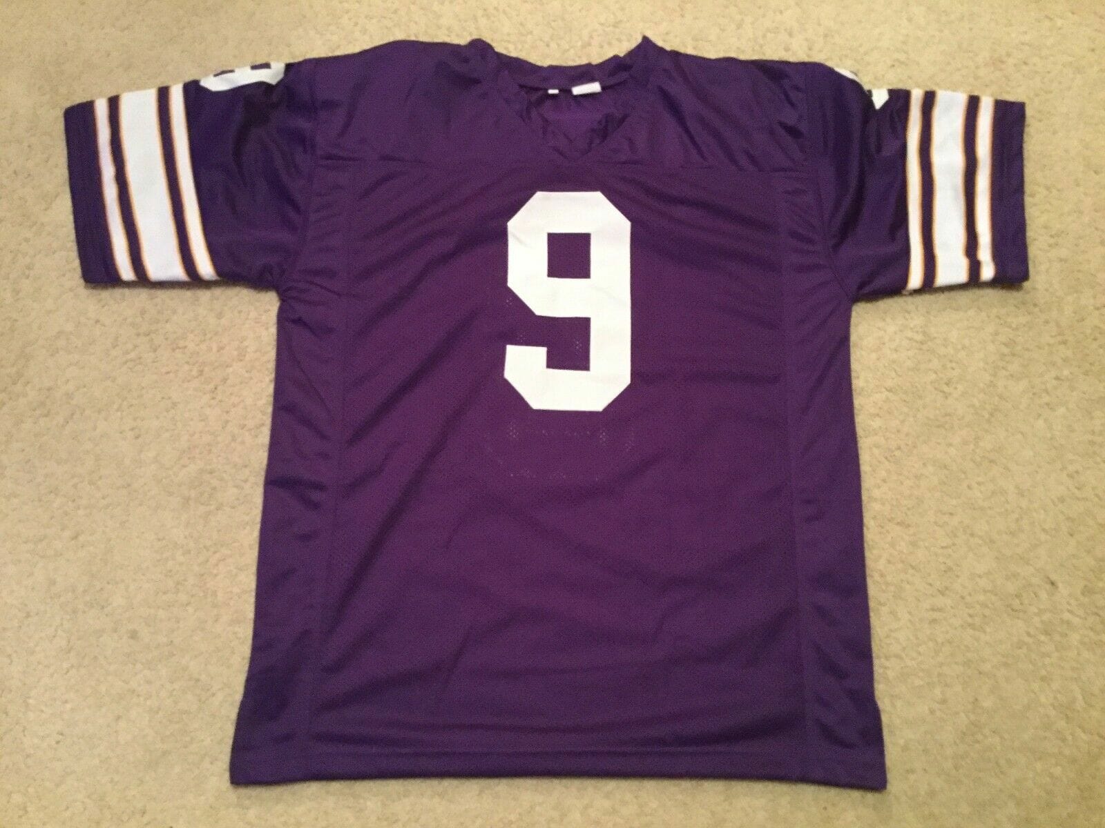 Celebrate your football fandom with this football jersey ! This UNSIGNED CUSTOM Sewn Stitched Tommy Kramer Purple Jersey is available in various size men and features a combination of stitched-embroidery. You’ll look just like your favorite football players when you rock this football jersey!