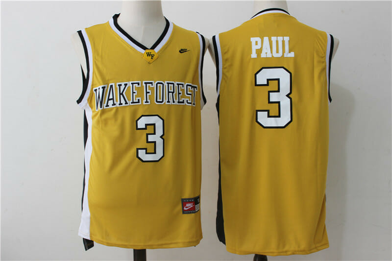 Make sure you are ready to celebrate another college basketball team victory on game day! This Wake Forest University #3 Chris Paul NCAA Basketball Jersey Yellow is available in various size and gender men college basketball jersey size and is a perfect way to let you join in on the fun. It boasts quality team colors and graphics so you can feel just like a true basketball team and show off your fandom!