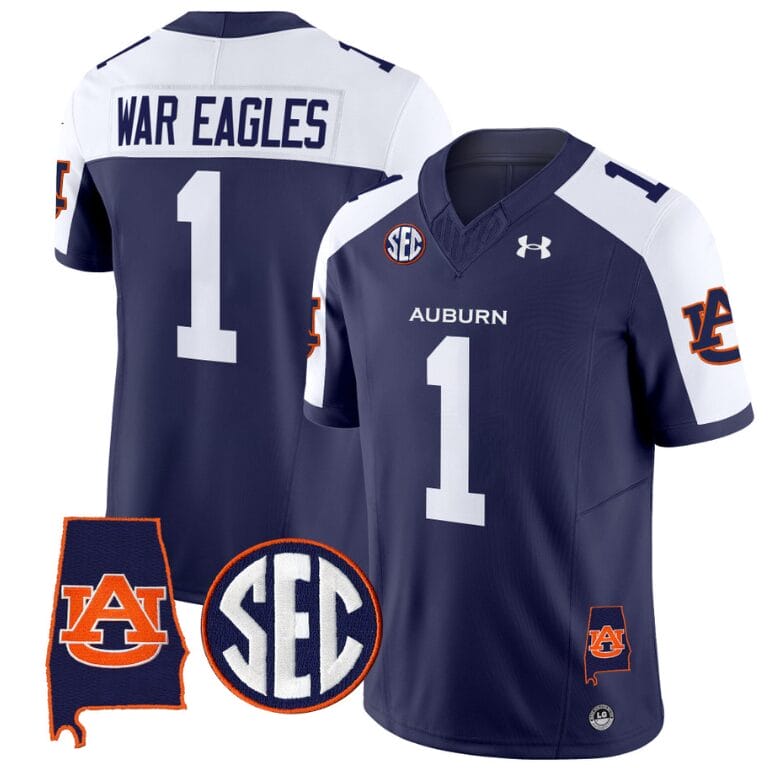 War Eagles Jersey #1 Auburn Tigers SEC Patch Vapor Limited College Football Stitched Navy Alternate