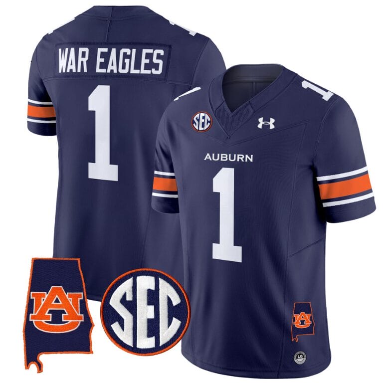 War Eagles Jersey #1 Auburn Tigers SEC Patch Vapor Limited College Football Stitched Navy